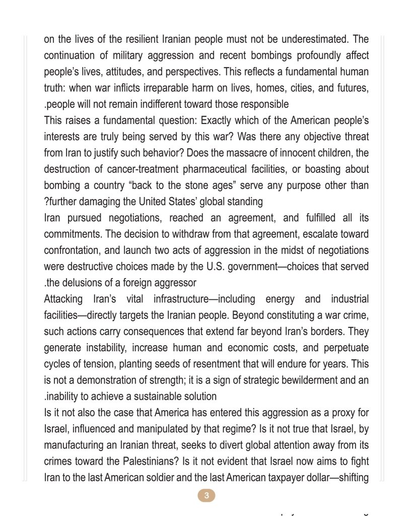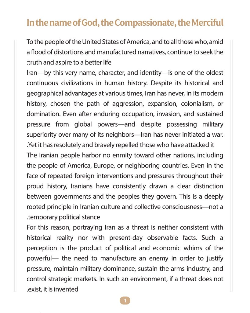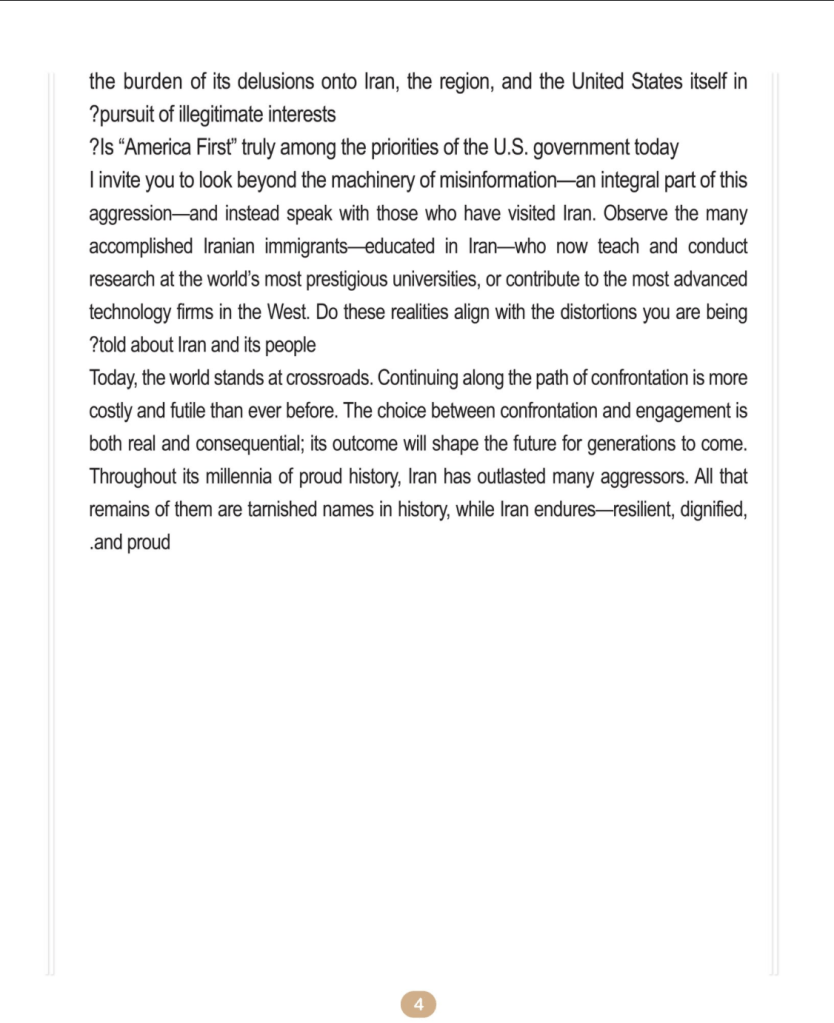 IRAN’s President’s Letter For American Citizens 4-2-2026