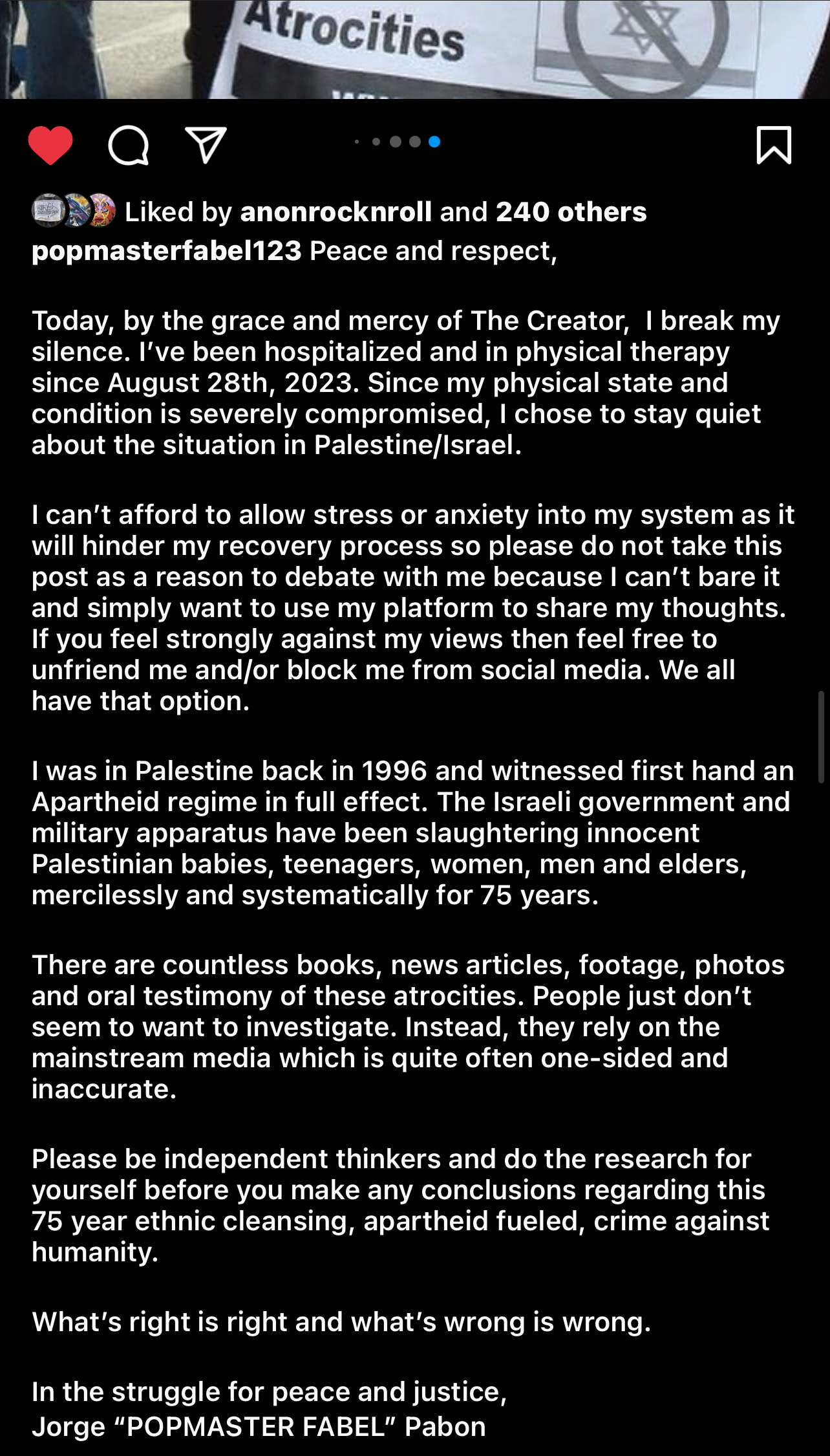 | WesFlexner supports Human Rights + Ceasefire |